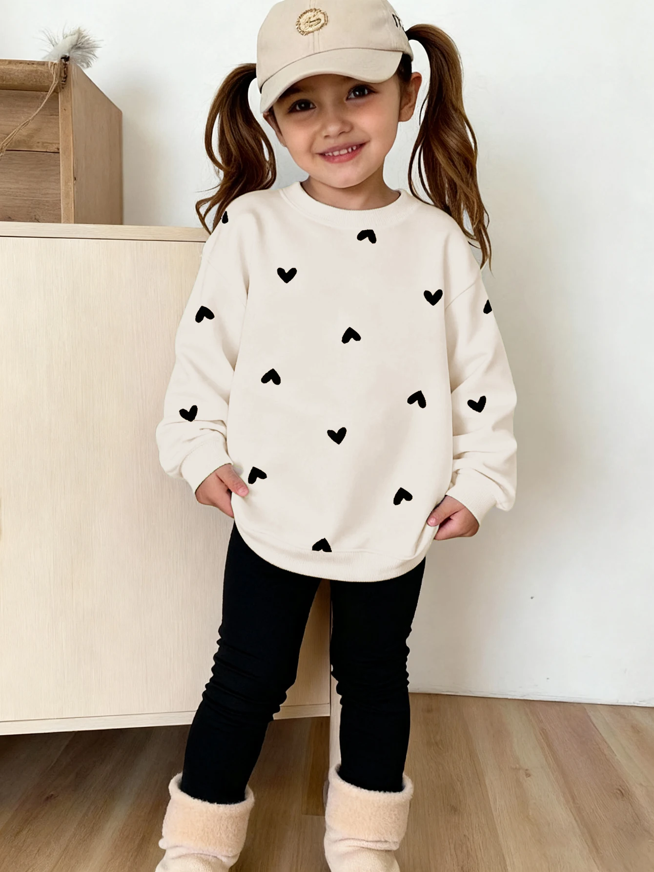Girls' Heart Print Sweatshirt Set Beige Long-Sleeve Top + Black Leggings 2-Piece Casual Kids Outfit $10.15