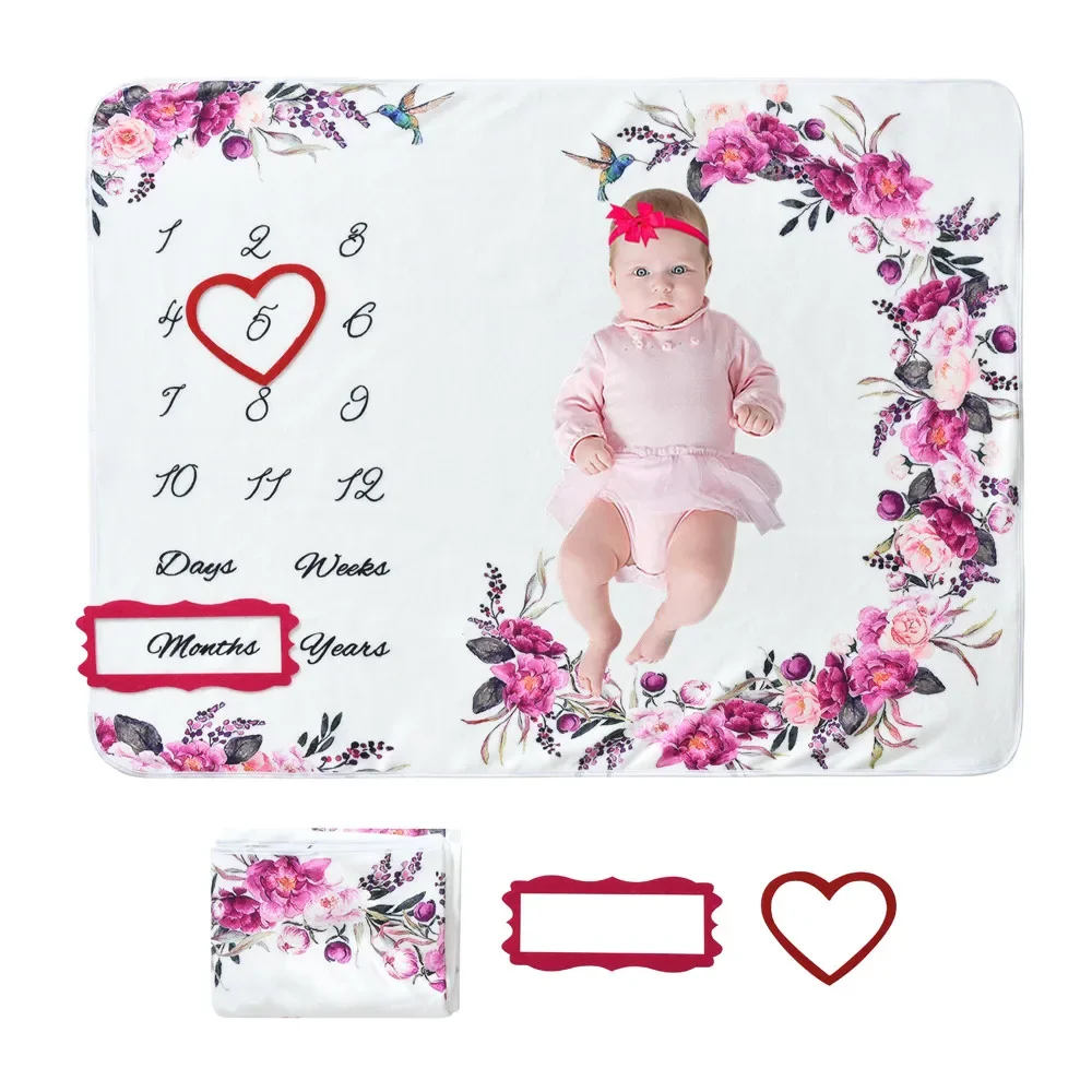 VIKAMA Baby Monthly Growth Milestone Background Blanket Growth Icon 100 Days Special Commemorative Photo Prop Blanket $6.61