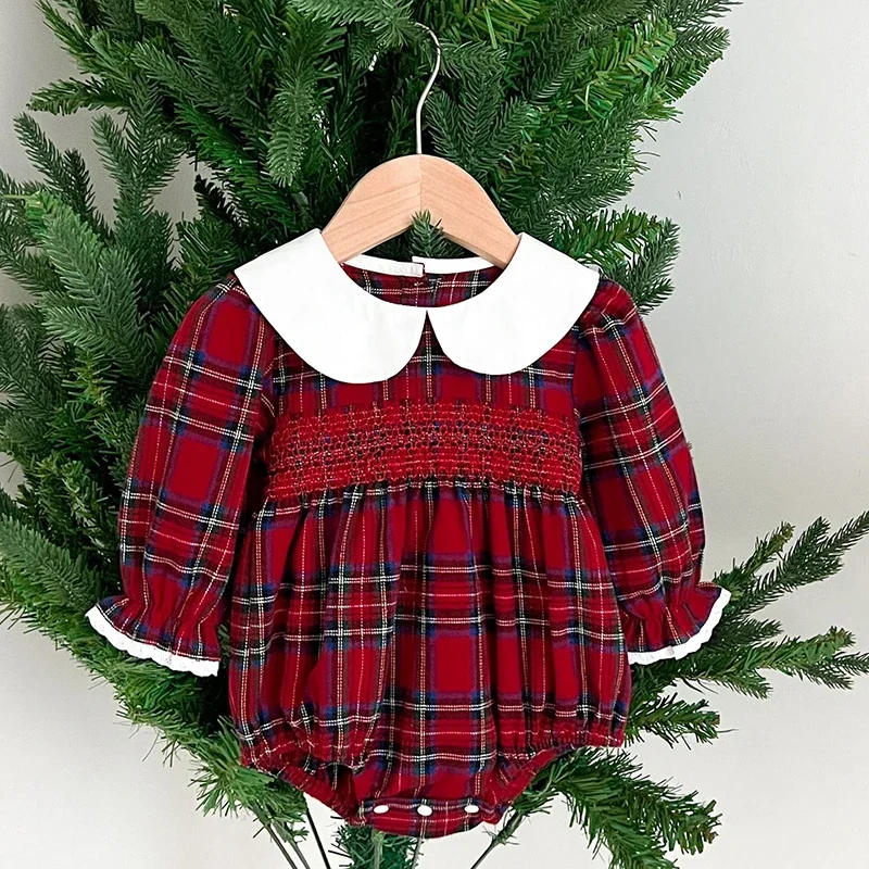 Christmas Infant Baby Girl Romper Autumn Winter Newborn Baby Girl Children Clothes Red Plaid Lapel Long Sleeved Newborn Romper $12.93