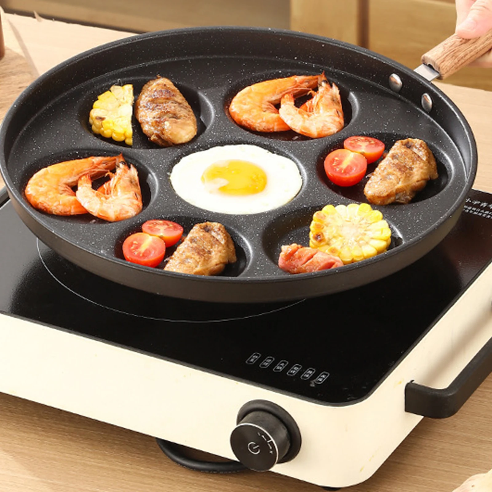 Seven-Hole Egg Frying Pan Non-Stick Frying Pan Household Frying Pan Egg Burger Breakfast Mold Induction Cooker For Outdoor Camp $24.65