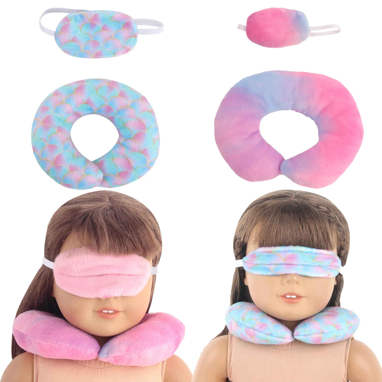 Doll Accessories Colourful Tie-Dye Neck Pillow and Eye Mask Set Fish Scale Pattern Neck pillow For 18-inch American & OG Dolls $3.13