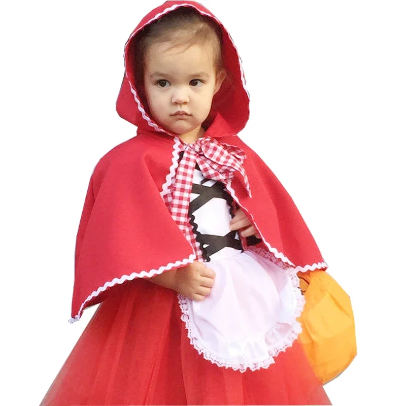 2025 Caperucita Roja para niñas Disfraz de Halloween Disfraz de Caperucita Roja Vestido de bebé con capa $19.22