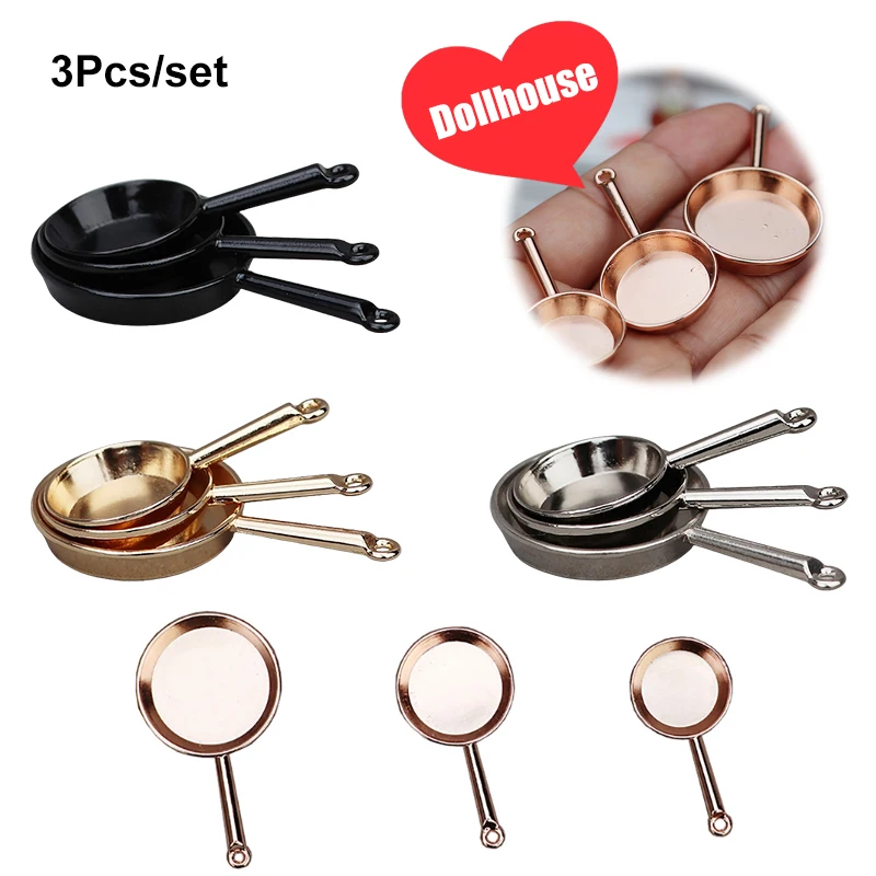 1Set 1:12 Dollhouse Miniature Frying Pan Casserole Metal Cookware Kitchen Model Decor Toy Doll House Accessories $4.14