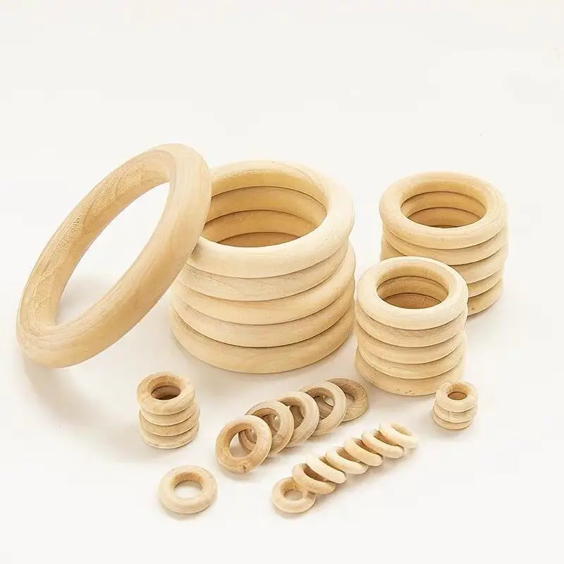 Anillos de madera Natural, cuentas, aros de madera sin terminar, mordedor para bebé, círculo de macramé, manualidades DIY, regal $7.32