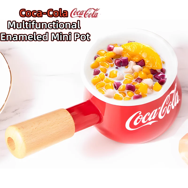 Coca Cola Enamel Wooden Handle Hot Oil Pot Mini Frying Pan Non-Stick Pot Soup Pot Milk Pot Cooking Pot Butter Warmer For Kitchen $24.84