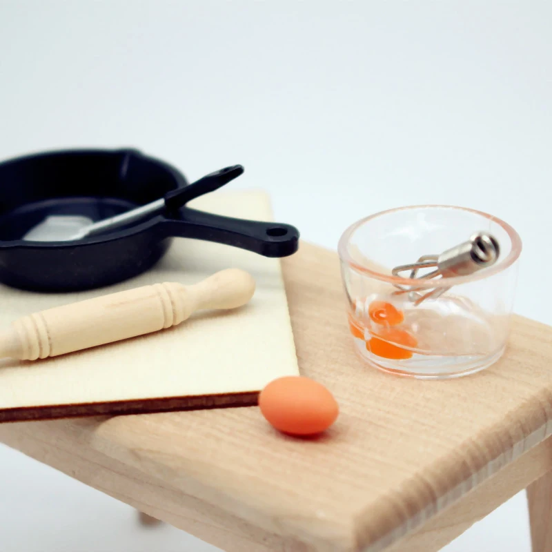 1:12 Dollhouse Simulation Egg Spatula Frying Pan Set Dollhouse Miniature Kitchen Cookware Accessories Dolls House Food Toys $3.25