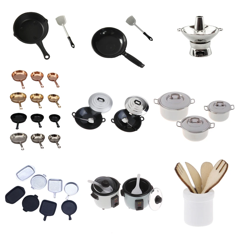 New 1Set 1:12 Dollhouse Miniature Frying Pan Casserole Cookware Model Decor Toy Doll House Kitchen Cookware Supplies Accessories $4.06