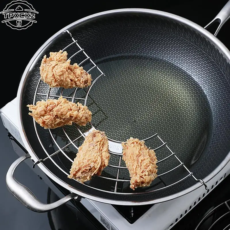 304 Stainless Steel Thick Line Semicircle Hanging Pan Frying Drain Line Rack Kitchen Accessories Insulation Pot Rack Steam Rack $4.41