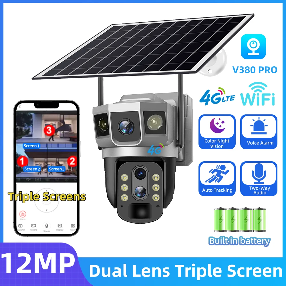 V380 Dual Lens 4G Camera Solar PIR Human Detection Night Vision Waterproof Security Video IP Camara 8MP 4K Battery CCTV Monitor $81.18