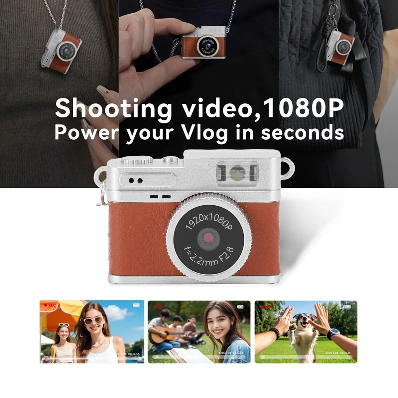Mini Retro Digital Camera 1080P FHD 0.96-inch Color Screen Keychain Camera With Flash 4 Filters Travel Photos Video Recording $17.28
