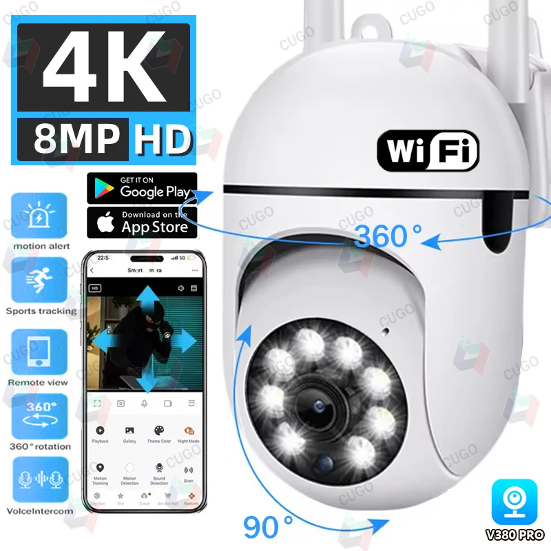 Wifi Surveillance Camera 8MP HD Wireless Security PTZ Camera AI Human Tracking Two-way Audio Color Night Vision Home IP Camera $20.26