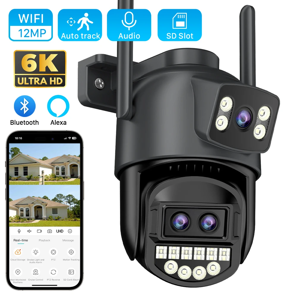 Outdoor 6K 12MP Wifi IP Camera with 8X Optical Zoom Three Lens Dual Screens Surveillance 4K 8MP Dual Video CCTV Security Camera $32.27