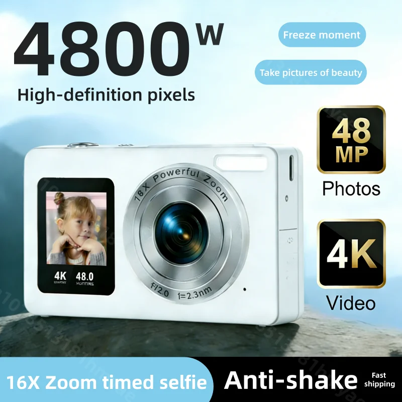 4K Digital Camera 48MP Dual-Screen Shoot Camera with Auto Focus Anti-Shake16X Zoom 64GB SD Card Digicam Gift for Boy Girl Teens $13.46