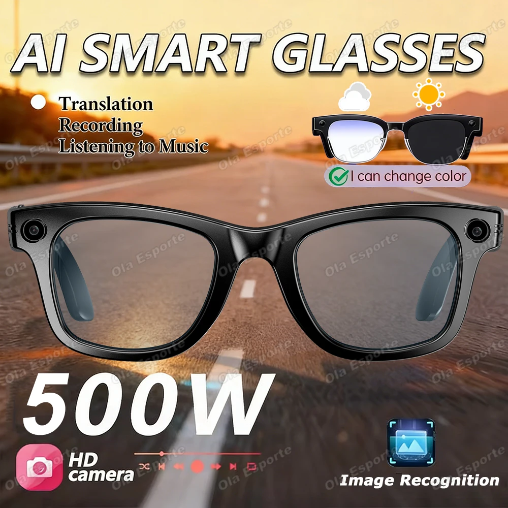 New 500W Camera AI Glasses Men Color-Changing Smart Translation Glasses Photo Video Recording Waterproof Call Smart Sunglasses $37.47