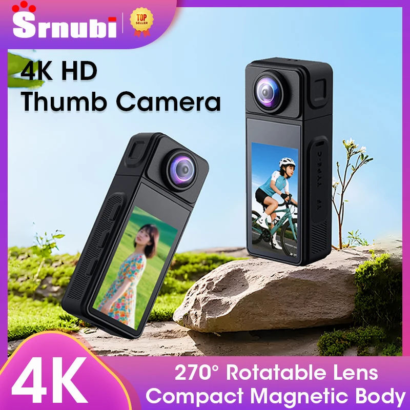 Srnubi 4K HD Thumb Camera IPS Screen Campus Pocket Small Sport Camera Handheld Video Record Cycling Tool 270° Rotatable Lens $32.06