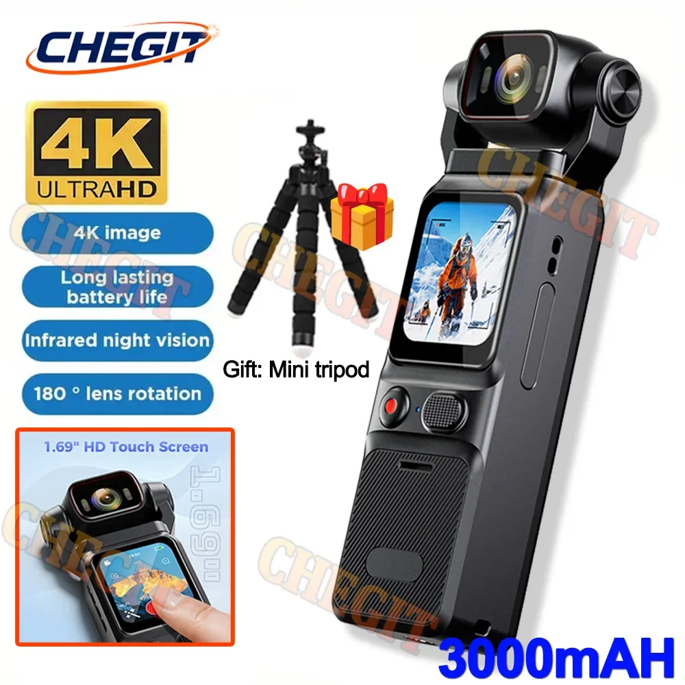 4K Touch Screen Portable MINI Vlog Camera Pocket Sports Camera with Gimbal tripo Handheld Stabilizer Body Camera Video Recording $54.68