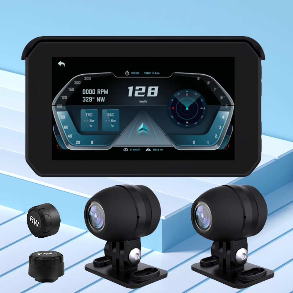 Wireless Carplay Android Auto 5 Inch GPS Screen Monitor Audio Recording Recorder Camera Tire Pressure Monitor Motorcycle Monitor $137.63