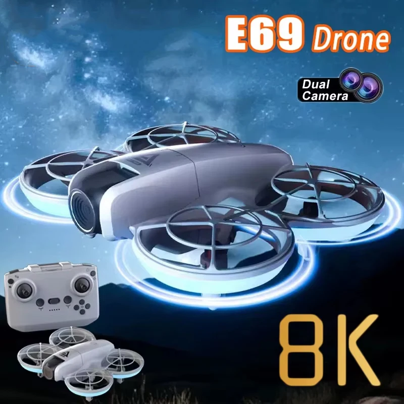 E69 Drone HD Dual 8K Camera Optical Flow Aircraft Screen Control Aerial Brushless Photography Remote Control Aircraft $24.50