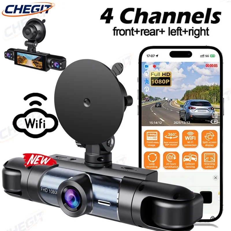 4-Channel Dash Cam Car DVR Video Recorder with WiFi Night Vision 24H Parking Monitor Black Box 360°° Car Recording Camera $32.63