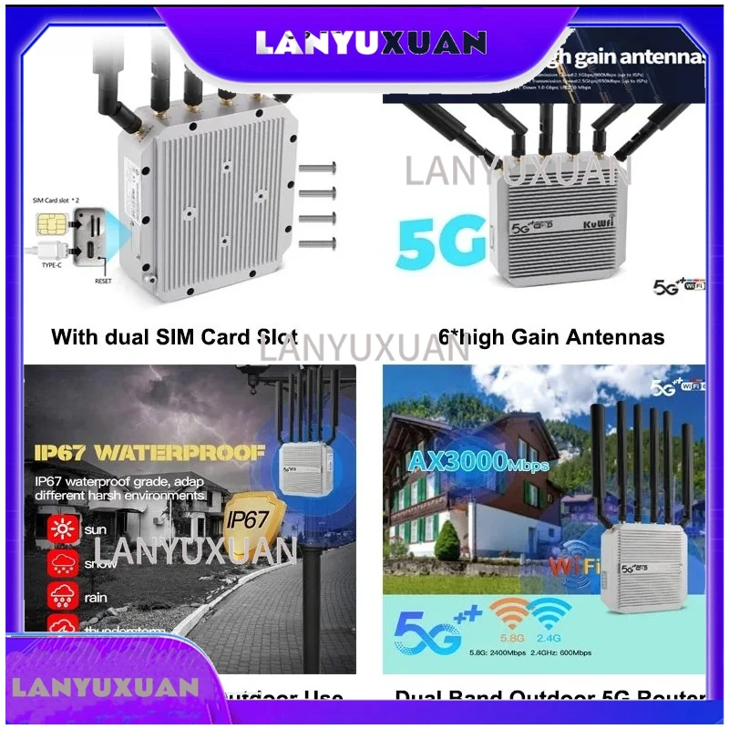 KuWFi Dual Band 2.4G 5G 3000Mbps 1000Mbps RJ45 Port Wifi6 Enrutador 5g Wifi 5g Sims Card Router for Indoor Use $517.79