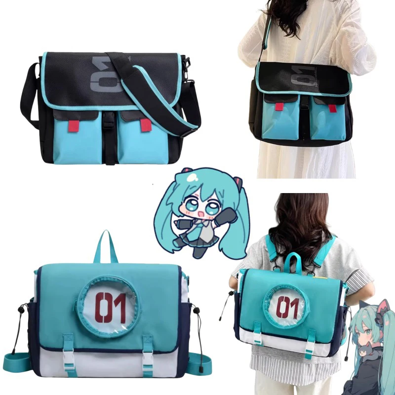 Hatsune Miku Creative Minimalist Patchwork Color Matching Student Bag Lid Style Large Capacity Crossbody Bag Holiday Gift $18.00
