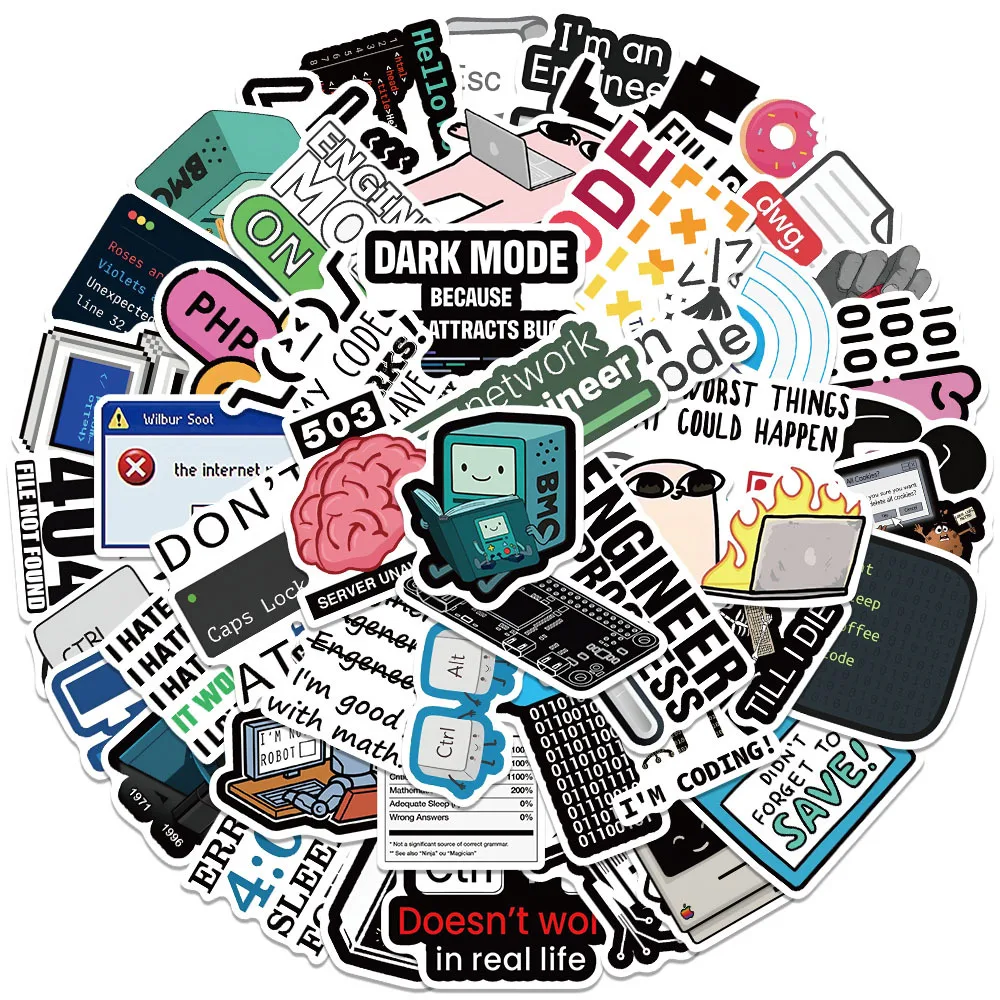 50Pcs Funny Programming Stickers Java Cloud Language Internet Decals DIY Skateboard Luggage Phone Waterproof Sticker Packs $3.05