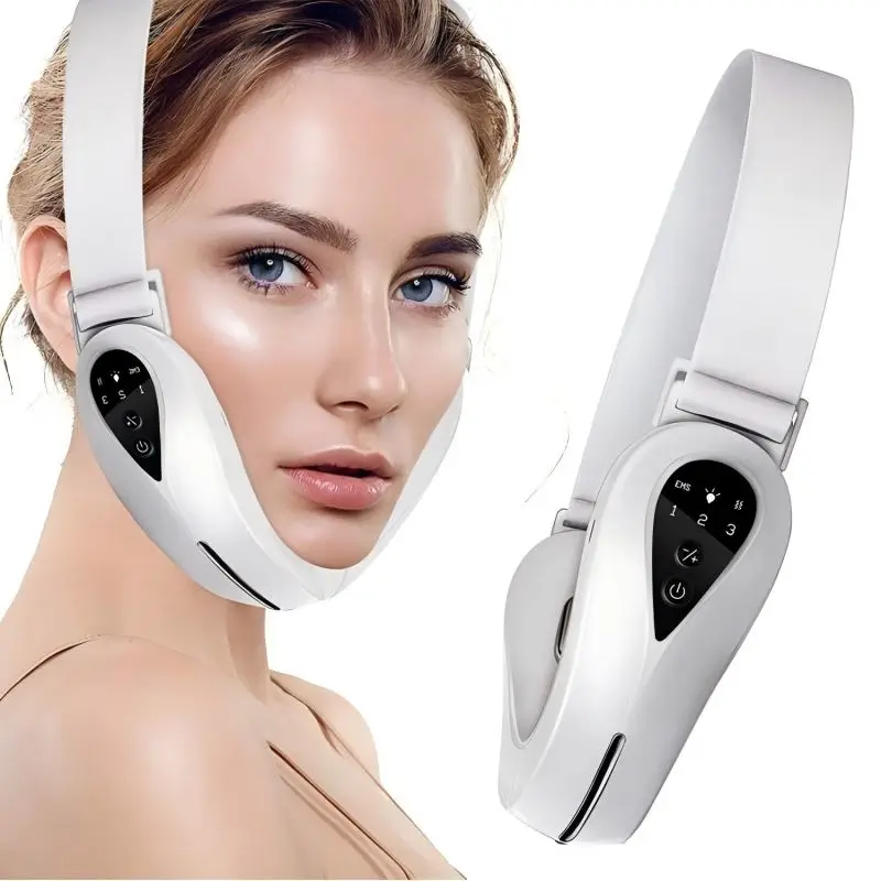 EMS Facial Massager V-Line Lift Up Belt Red Blue Light Face Slimming Vibration Massager Face Lifting Device Reduce Double Chin $14.58