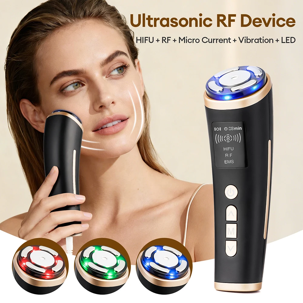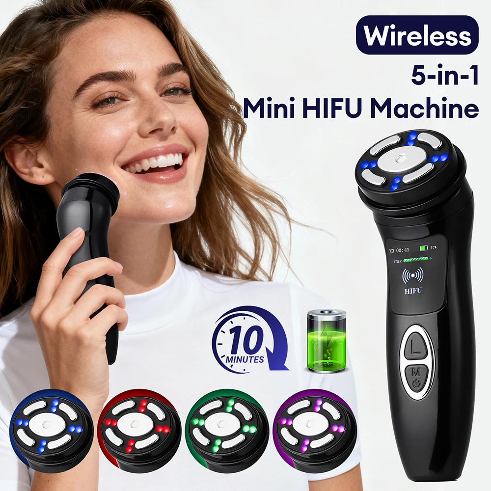 Wireless Mini HIFU Machine Home Use 5-IN-1 Anti Wrinkle Massager RF LED HIFU Ultrasonic Skin Tightening Facial Lifting Device $45.08