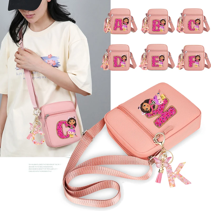 Gabby Dollhouse Shoulder Bag+keychain Set Creative Kawaii 26 Letter Crossbody Bags Girl Anime Figure Handbag Square Pouch Gifts $2.31