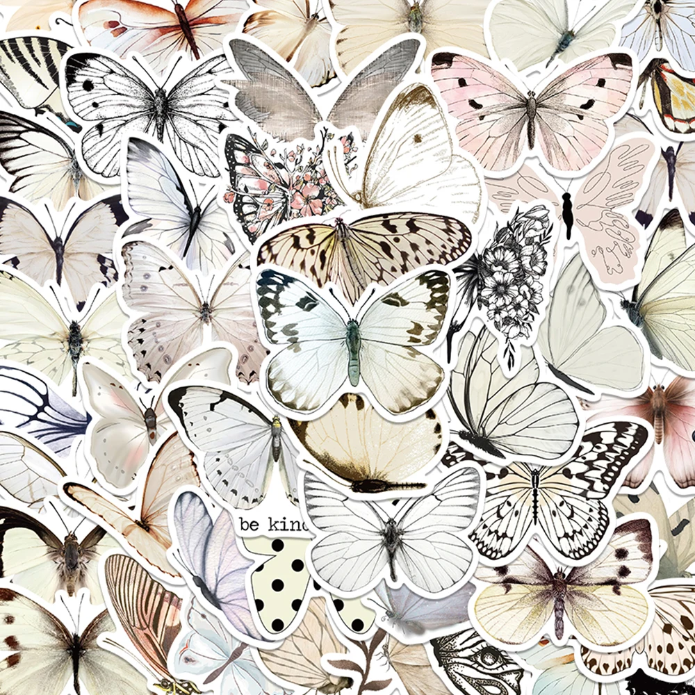 50pcs White Butterfly Sticker Aesthetic Fashion Decal For Phone Luggage Scrapbook Guitar Skateboard Helmet Decorative Sticker $3.68