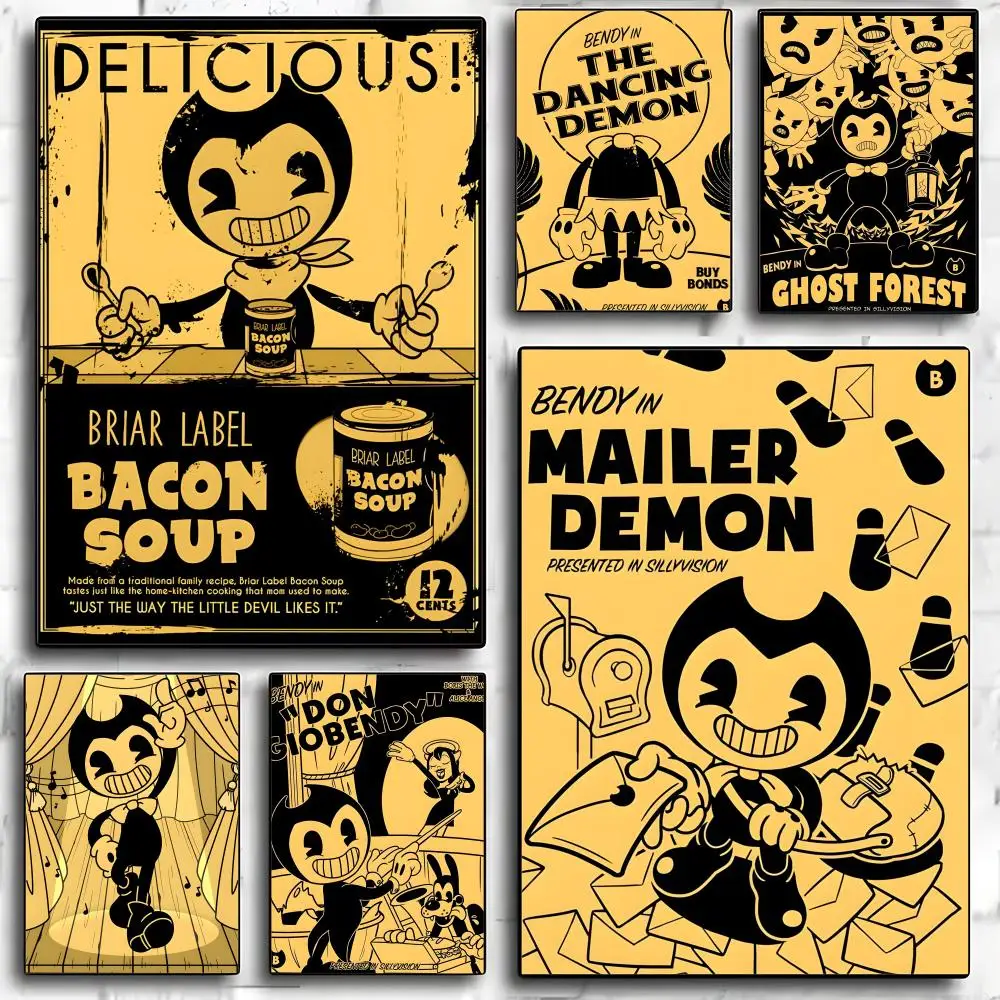 Game B-Bendy and the Ink M-Machine Poster Decorative Wall Art Stickers Mural Photo Print for Home Living Room Hallway Decor $3.19