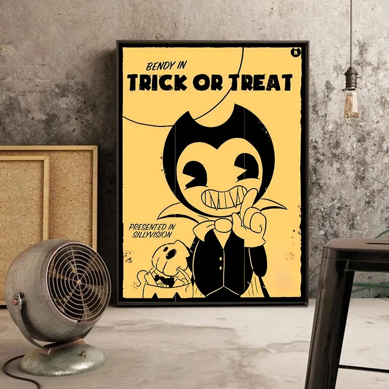 Canvas Painting Wall Art Horror Video Game B-Bendy-and I-Ink M-Machine Cartoon Poster and Prints Pictures Home Gamer Room Decor $3.75