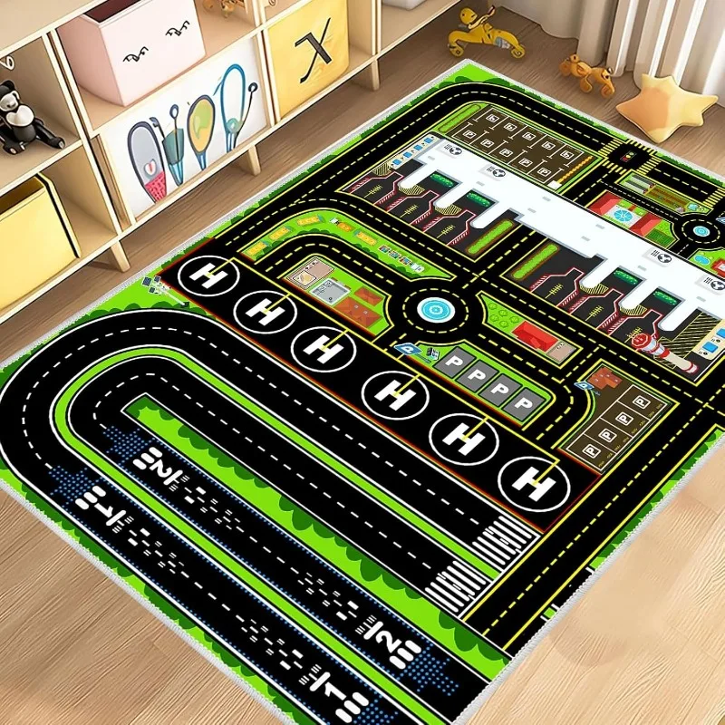 Traffic Track Carpet City Road Pattern Play Mat Educational Interactive Game Rug Non-slip Living Room Bedroom Decor Floor Mat $10.99