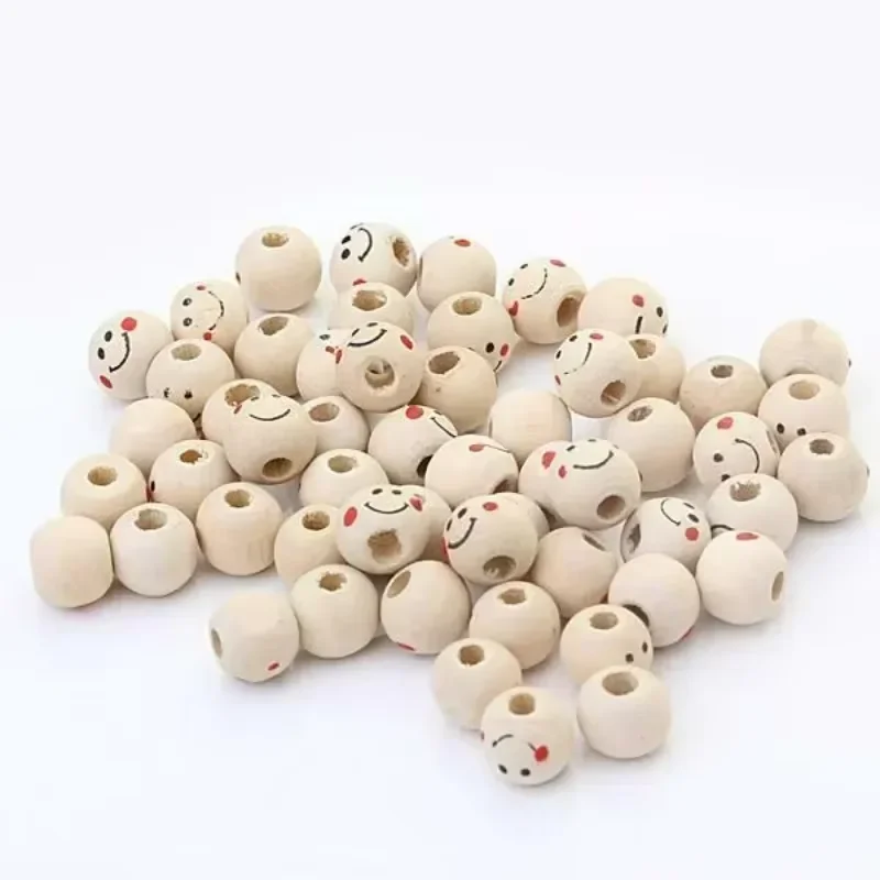 10/20/30/50/100PCS Cute Smiling Face Doll Head Wood Bead Bead Accessories Madeing 10/12/14/16/20/25mm DIY Accessory Crafts $3.54