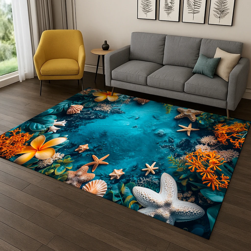 Beach Conch Starfish Seascape Carpet Rug for Bedroom Living Room Sofa Doormat Home Kitchen Decor,Kid Game Area Rug Non-slip Mat $7.93