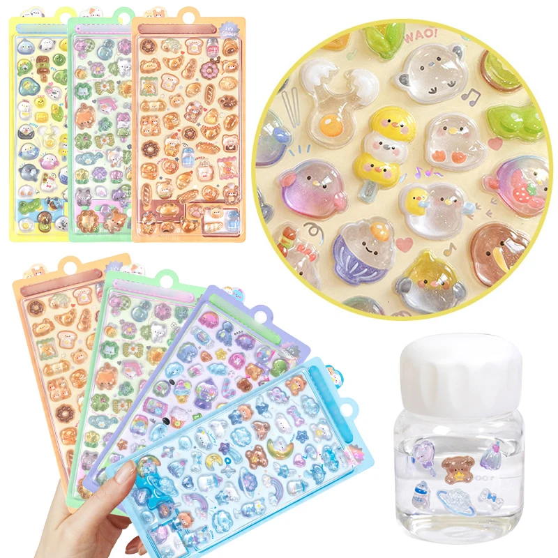 1Sheet Creative 3D Embossed Sticker Cute Animal Colorful Crystal Diamond Float Stickers Household Laptop Suitcase Decoration ZYF $3.27