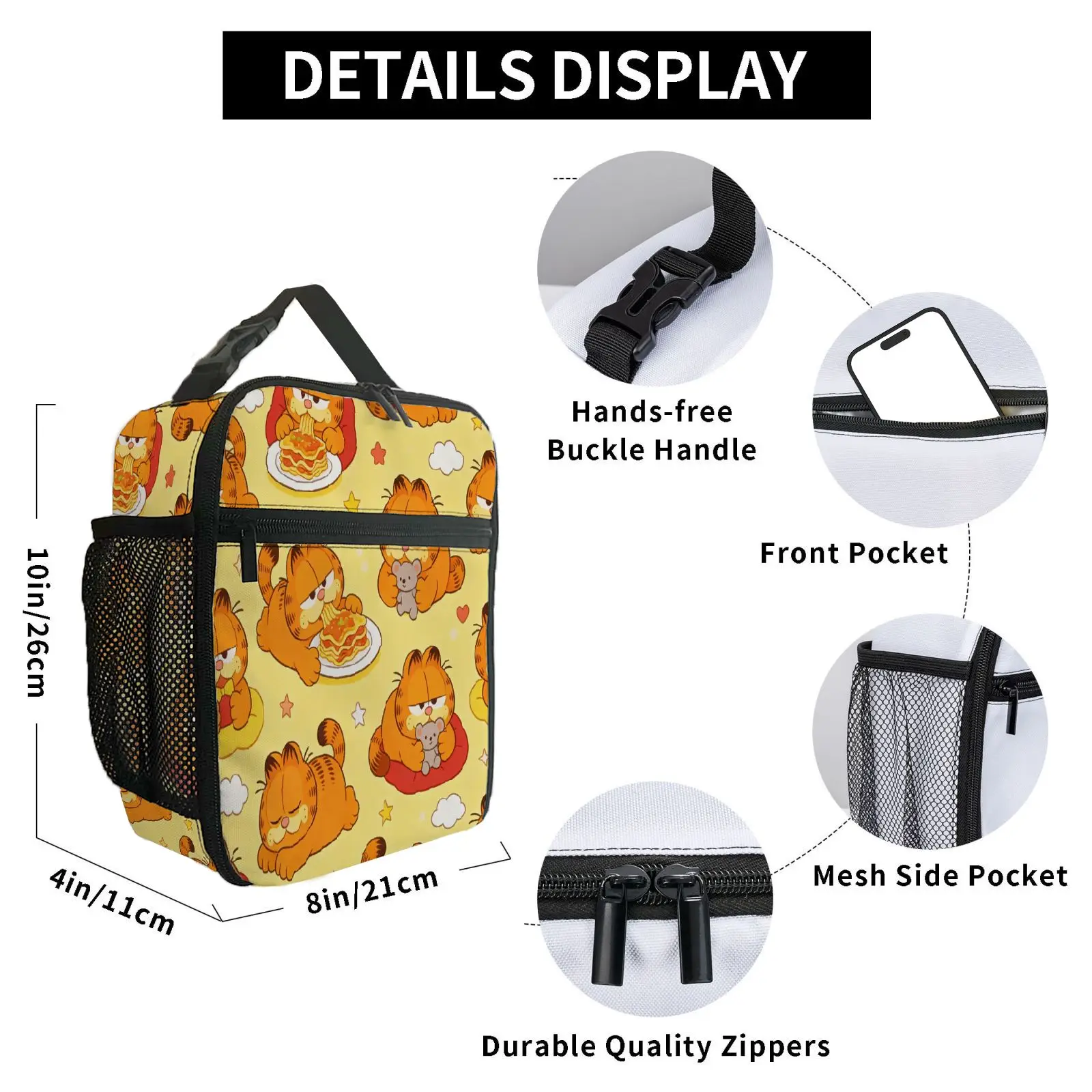 Cartoon Orange Cat Garfield Print Lunch Bag Portable Insulated Food Bag Cute Thermal Lunch Tote For Girls $11.59