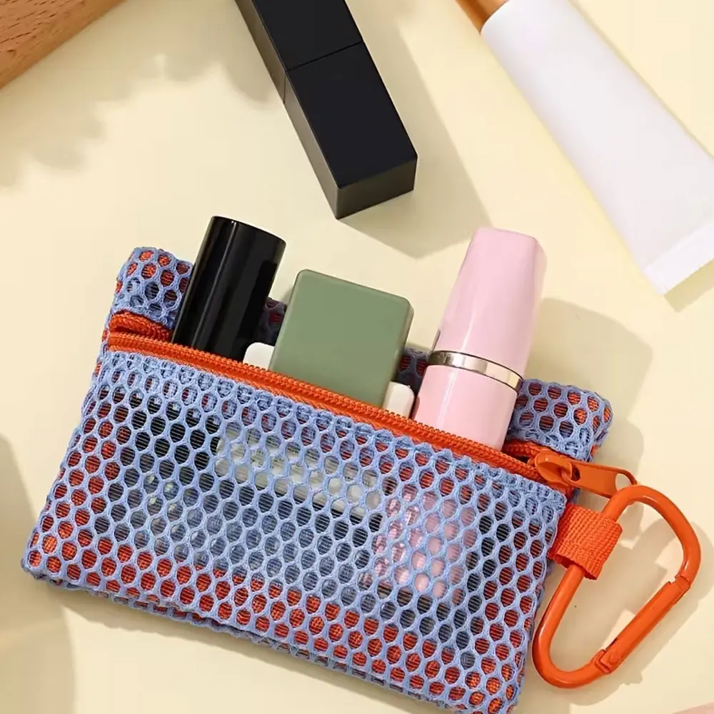 1Pcs Transparent Mesh Cosmetic Bag, Fashionable and Portable Square Black Mesh Bag, Flat Toiletry Storage Bag $4.13