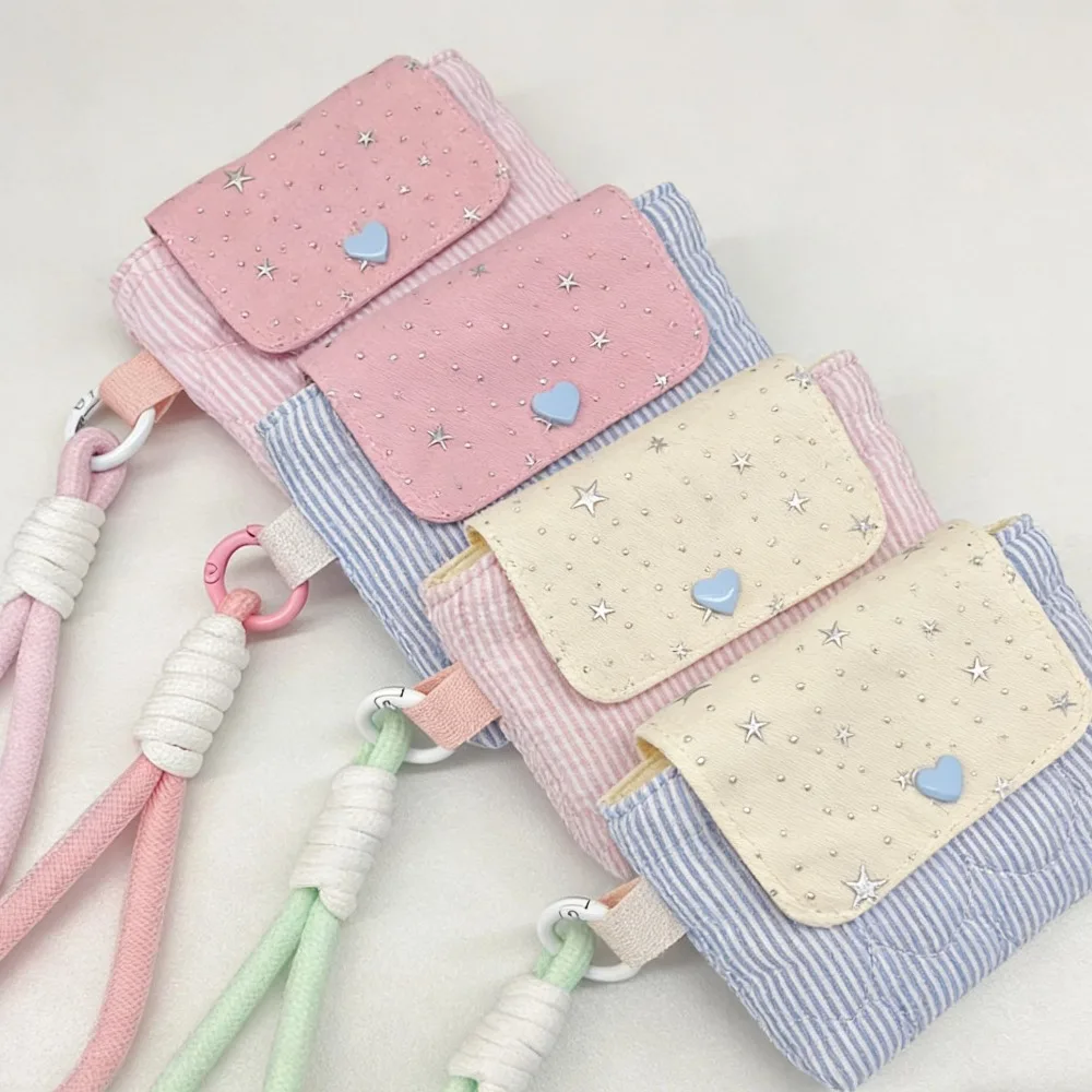 Kawaii Striped Mini Bag for Girls ,Multi-function Wristlet Coin Purse,Menstrual Pad/ Card/Earphone Storage Bag Portable Pouch $5.35