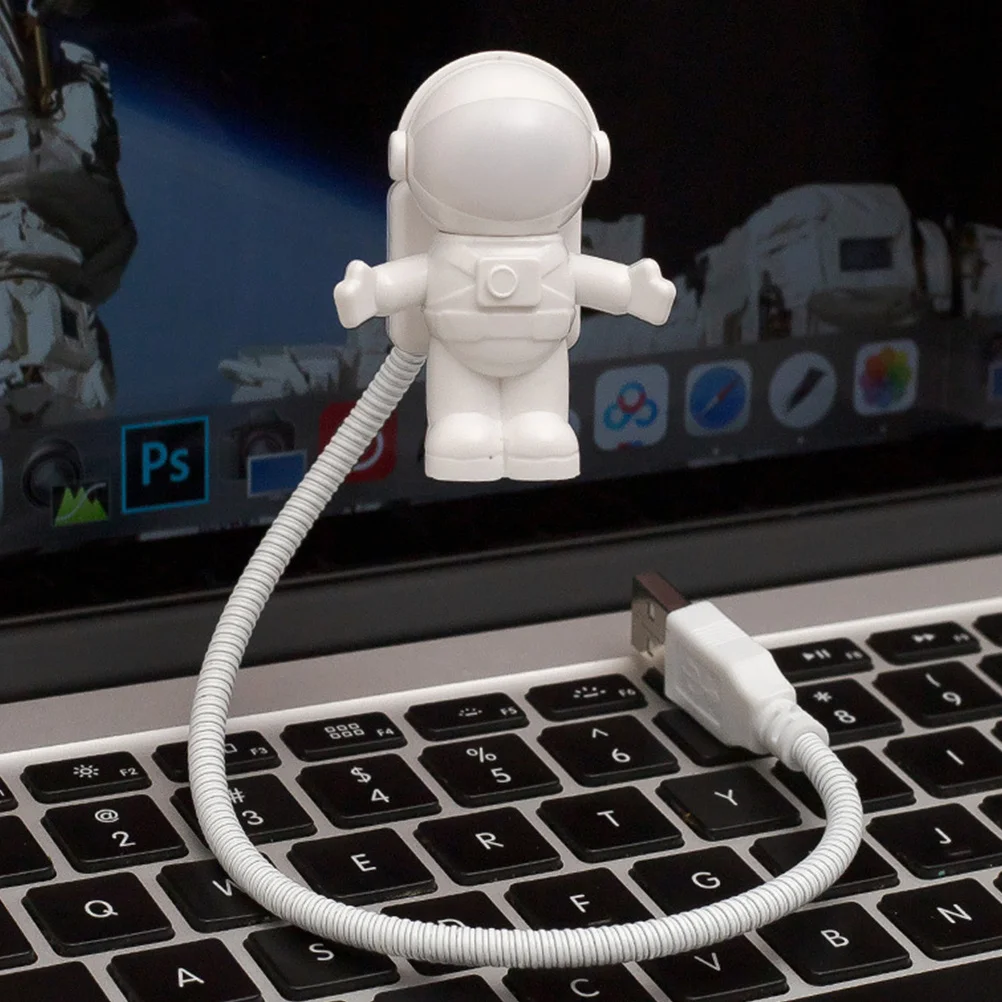 USB Powered Astronaut Night Light with Bendable Gooseneck for Bedside Laptop Reading Portable Spaceman LED Lamp for Home Office $1.35