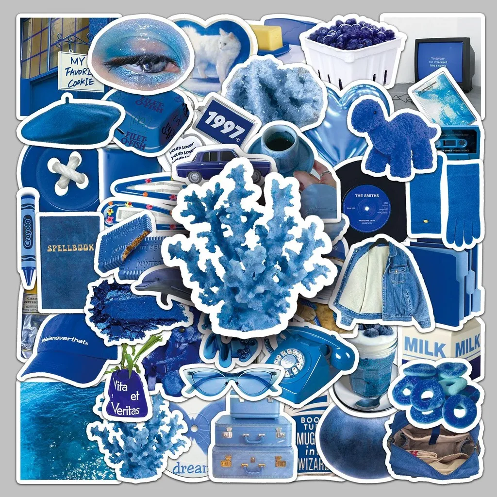 50Pcs Blue INS Style Journal Sticker Aesthetic Minimalist Decor for Phone/Laptop/Water Bottle Waterproof RecordingYourLife Store $3.14