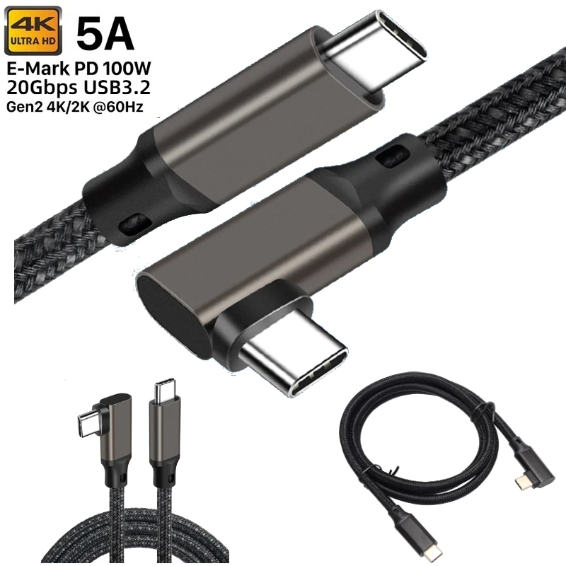 USB3.2 Gen2*2 20Gbps Elbow Type C To Type C Data Transfer Cable PD100W Super Charging Cable 4K 60Hz For Phones Laptop VR Glasses $4.14