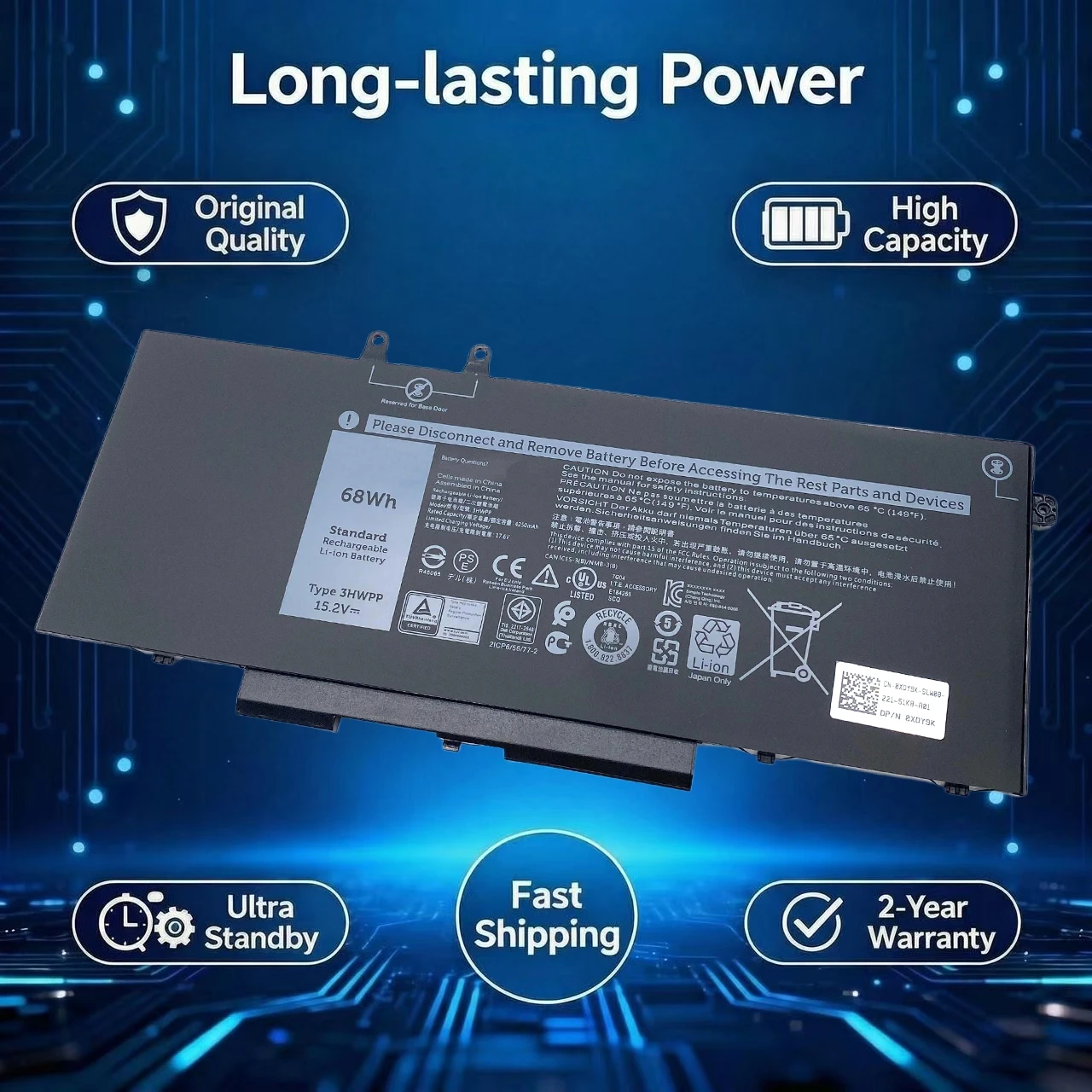 New 3HWPP Laptop Battery For DELL Latitude 5401 5501 5411 5410 5511 3541 7500 7706 2-IN-1 Series Notebook P80F003 P98G003 0JG75F $24.00