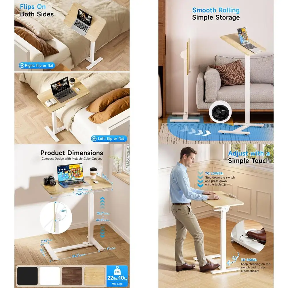 Portable Maple Laptop Desk with Pneumatic Height Adjustment, Wheels, and 180° Swivel Top for Hospital and Home Use $122.34