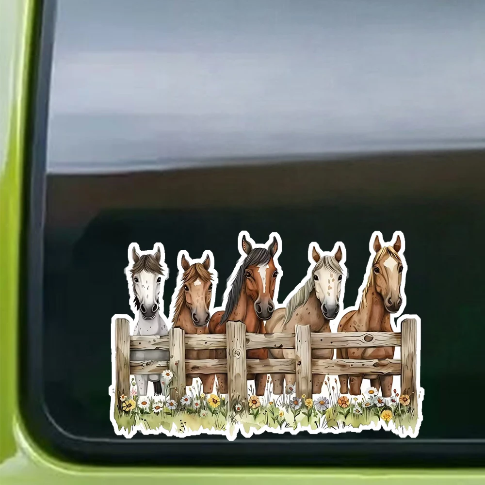 Five Horses at the Fence Waterproof Car Decorative Decal, Suitable for Cars, Laptops, Bumpers, Glass Window Sticker $2.74