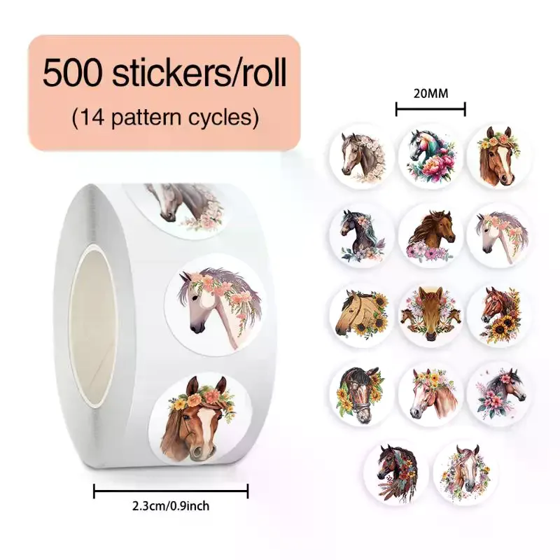 500pcs/Roll Animal Horse Flower Cartoon Sealing Sticker DIY PVC Laptop Decals Decoration Stiker Reward Gift Kawai $0.87