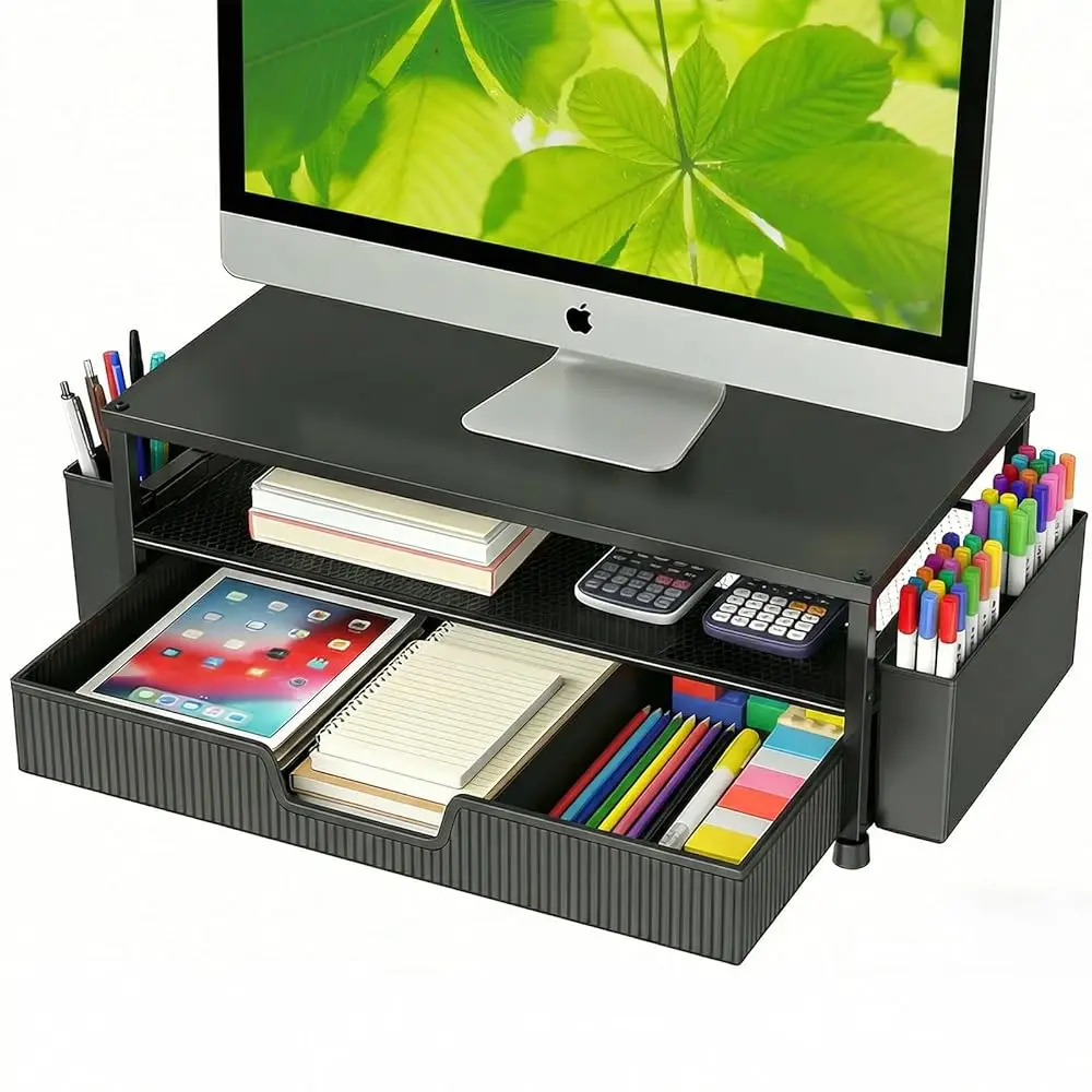 Desk Organizer and Accessories, 2-Tier Computer Monitor Stand Rise with Storage Drawer & 2 Pen Holders, Laptop & Printer Stan $54.17
