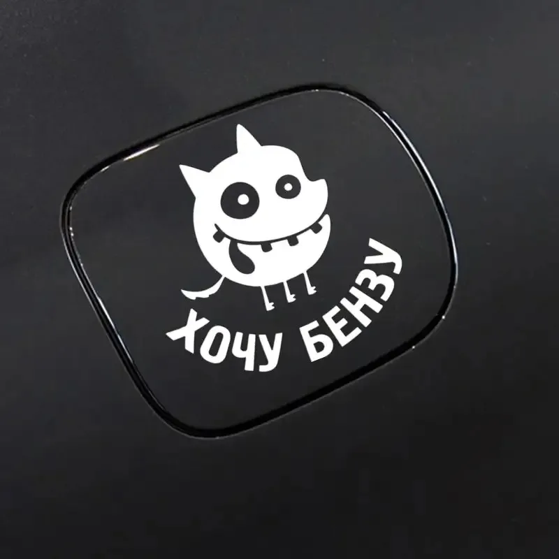 Cute Cartoon Dog Round Sticker "I Want Gasoline" Russian Text - Waterproof High Adhesion Decor for Car Laptop Phone Case $4.74