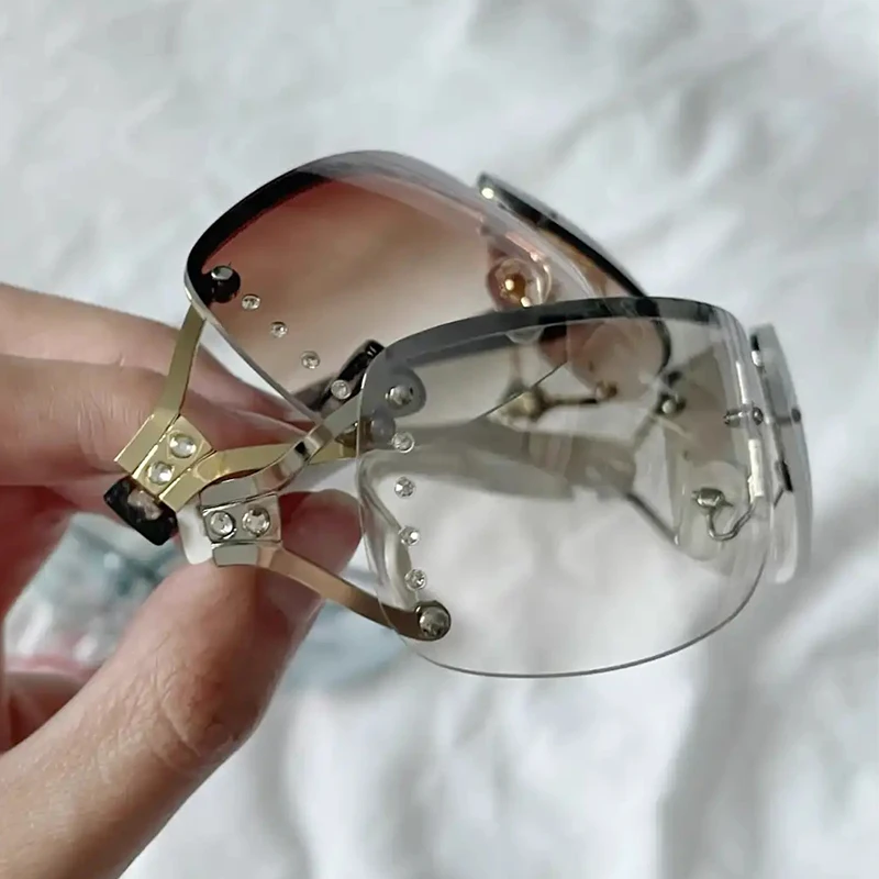 47391 Rimless Square Luxury Sunglasses Brand Designer Men Women Fashion Shades Uv400 Vintage Glasses $4.74
