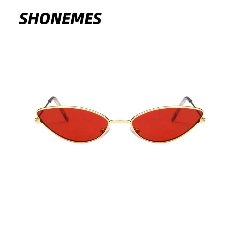 SHONEMES Small Cat Eye Sunglasses Stylish Women Shades Narrow Frame Outdoor UV400 Sun Glasses Gold Grey Red for Female $1.88